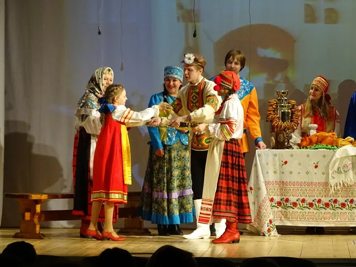 В рамках городского творческого марафона «Сила традиций», посвященного Году народного искусства и нематериального культурного наследия народов России в Городском доме культуры прошел тематический фольклорно-обрядовый праздник «Как на Руси гуляли да свадьбу справляли». Цель мероприятия - приобщить детей к культурному наследию русского народа, ознакомить с обрядами и обычаями родного края, привить интерес к ним, воспитать в детях уважение и познавательный интерес к культуре родной страны.