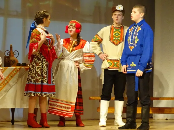 Как известно, свадебный ритуал на Руси во многом напоминал театральное представление. Участники творческой самодеятельности и сотрудники Дома культуры рассказали и показали целую историю: от сватовства до самой свадьбы. Действие на сцене сопровождалось традиционными свадебными обрядами и подлинными фольклорными свадебными песнями.