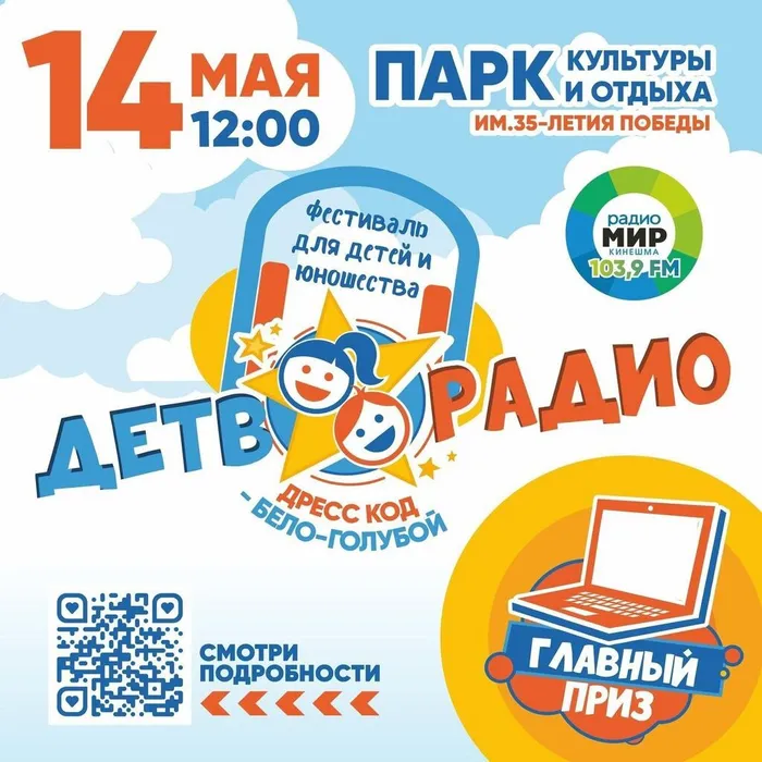 - Сделать классное фото или видео и разместить его у себя на странице в любой соц.сети с хэштегами: #ДЕТВОРАДИОКинешма #ПаркХочуНоутбук