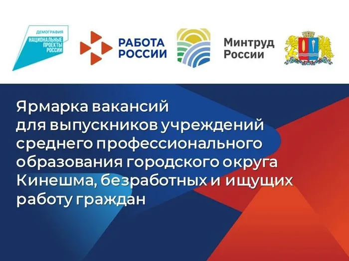 Все желающие приглашаются 5 июля в 11 часов на ярмарку вакансий: г. Кинешма, ул. 50-летия Комсомола, д. 20 (остановка Лесозавод).