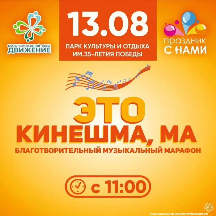 13 августа в Кинешме состоится первый музыкальный благотворительный марафон «Это Кинешма, Ма».