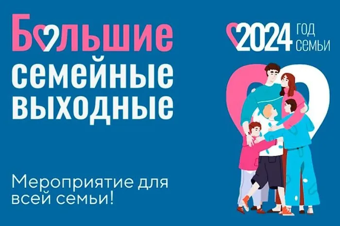 «Большие семейные выходные» – это масштабный всероссийский проект, запущенный в 2024 году и приуроченный к Году семьи в России. Проект направлен на объединение разных поколений семьи участием в совместных активностях. 1 и 2 июня кинешемцев и гостей города «Большие семейные выходные» приглашают в учреждения культуры и спорта.