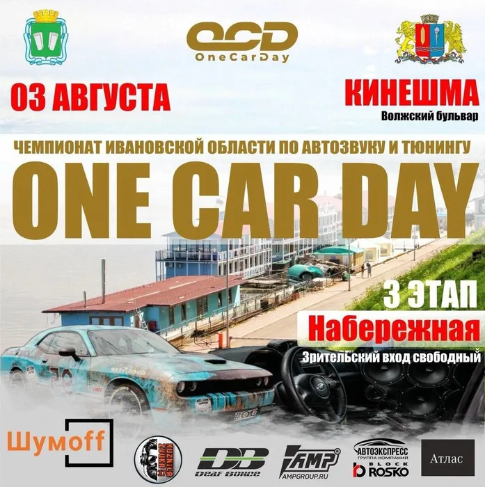 Впервые в Кинешме пройдёт этап Чемпионата по автозвуку и тюнингу «One Car Day» на Нижней набережной Волжского бульвара.
