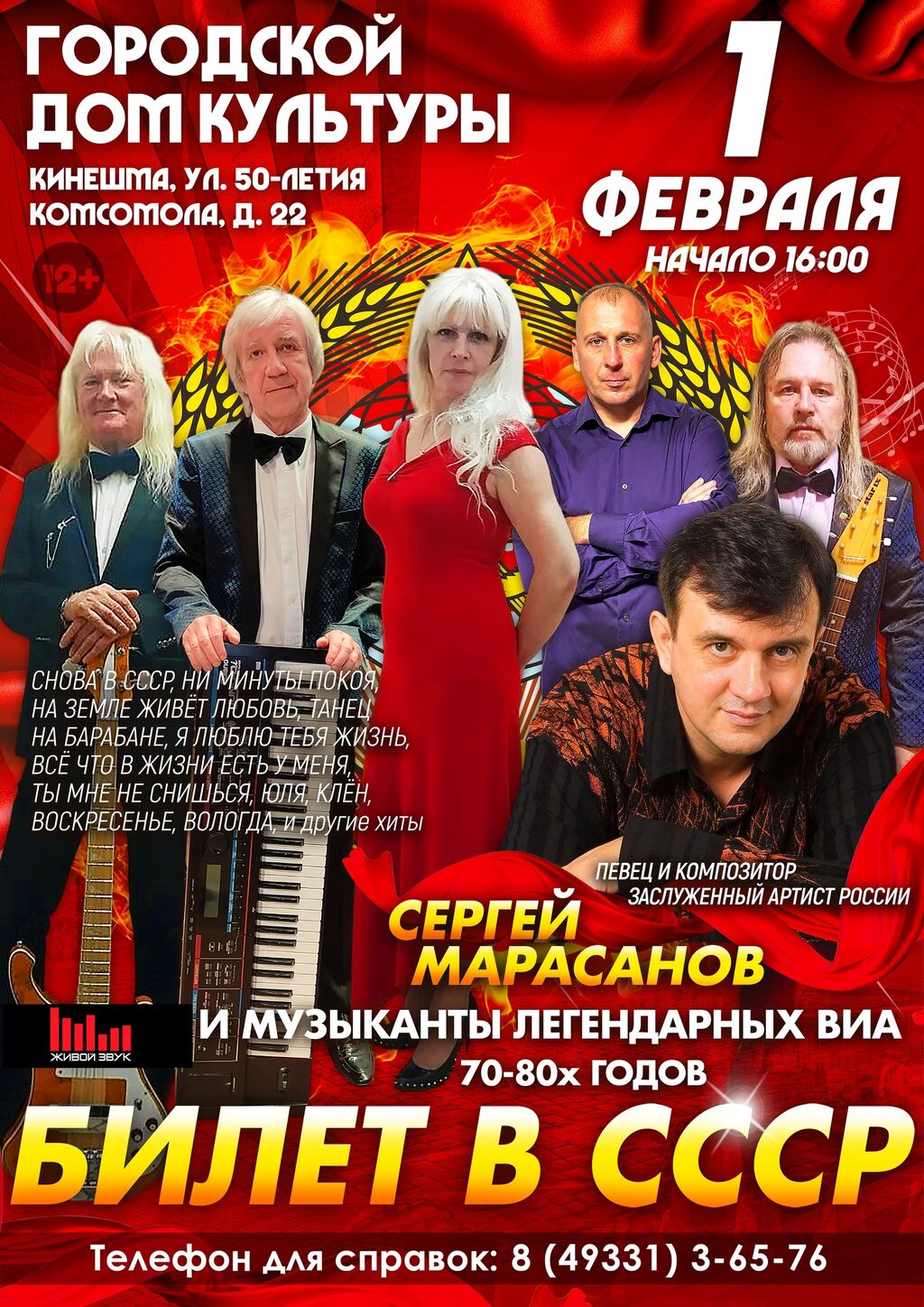 1 фвраля в 16:00 в Городском Доме культуре состоится концертная шоу-программа "Я люблю тебя жизнь" музыкального коллектива "Билет в СССР".