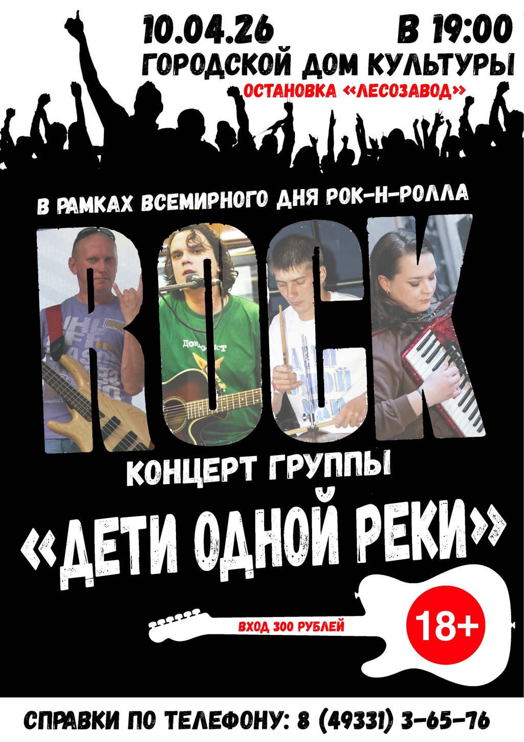 10 апреля в 19:00 в Городском Доме культуры состоится концерт группы «Дети одной реки», посвященный Всемирному дню рок-н-ролла.