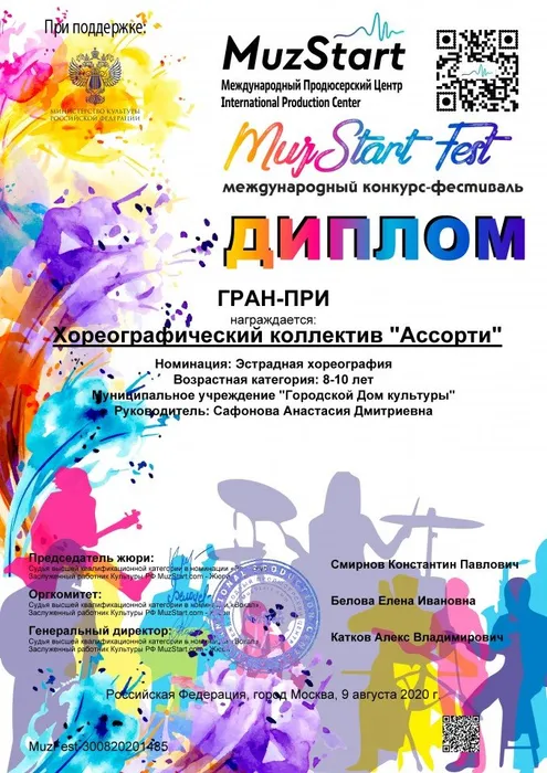 - Хореографический коллектив «Ассорти» – 5 дипломов Гран-при;