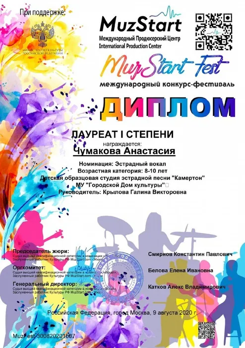 Эпицентром таких конкурсов стал Международный продюсерский центр «MuzStart» (г.Москва), участниками которых стали солисты Детской образцовой студии эстрадной песни «Камертон» (руководитель Галина Крылова), участники хореографического коллектива «Ассорти» (руководитель Анастасия Сафонова), а также Заслуженный коллектив народного творчества Ивановской области народный театр кукол «Пилигрим» (руководитель Евгений Бородулин).