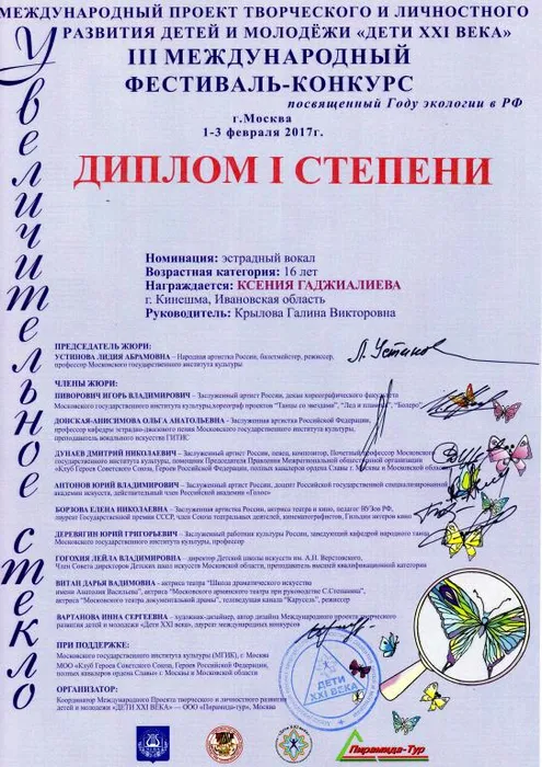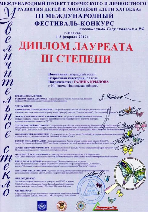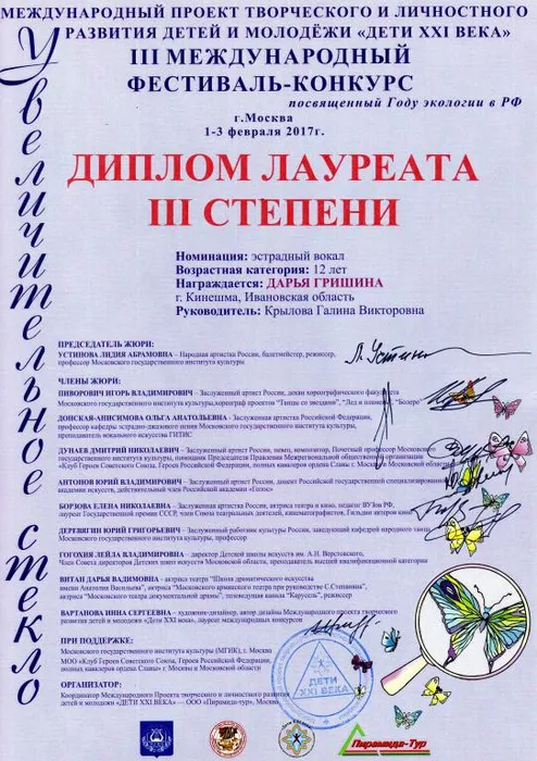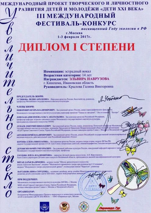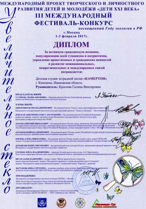 01-03 февраля 2017 года в Москве проходил Международный многожанровый фестиваль «Увеличительное стекло», где детская студия эстрадной песни «Камертон» достойно выступила, получив два диплома лауреатов III степени и два диплома I степени, а также диплом за активную гражданскую позицию, популяризацию идей гуманизма и патриотизма, укрепление нравственных и гражданских ценностей и развитие межнациональных, межрегиональных и международных связей.