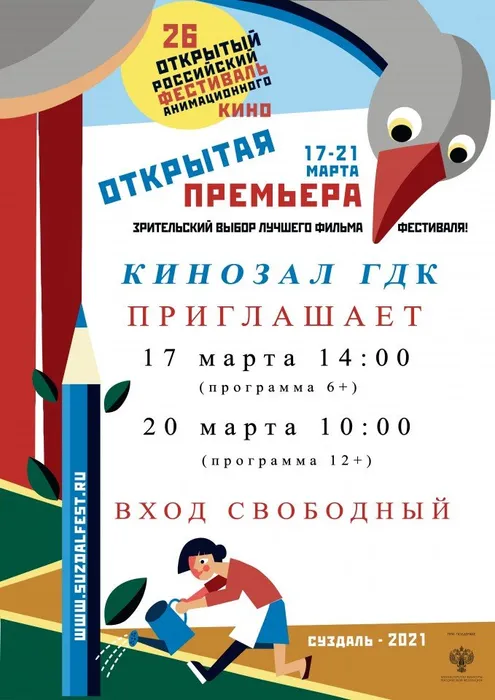 В этом году, несмотря на пандемию, акция состоится вновь, и ребята смогут бесплатно посмотреть российские мультфильмы на большом экране, а также проголосовать за полюбившуюся картину. Показы мультфильмов в рамках «Открытой Премьеры» вновь пройдут в кинозале Городского Дома культуры с 17 по 21 марта.